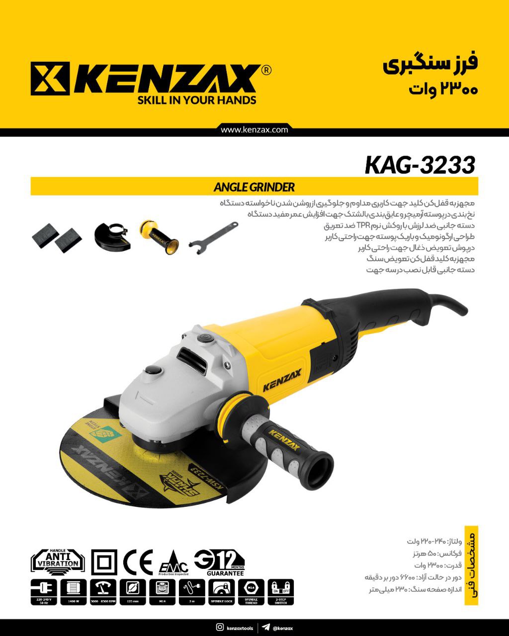 فرز سنگبری 2300 وات KAG-3233کنزاکس KENZAX