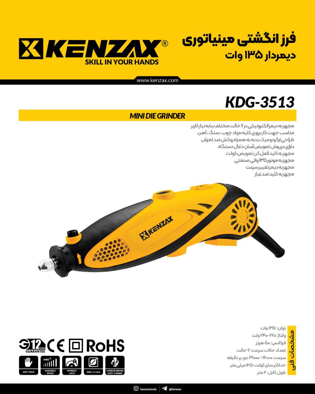 فرز مینیاتوری 135 وات KDG-3513کنزاکس KENZAX