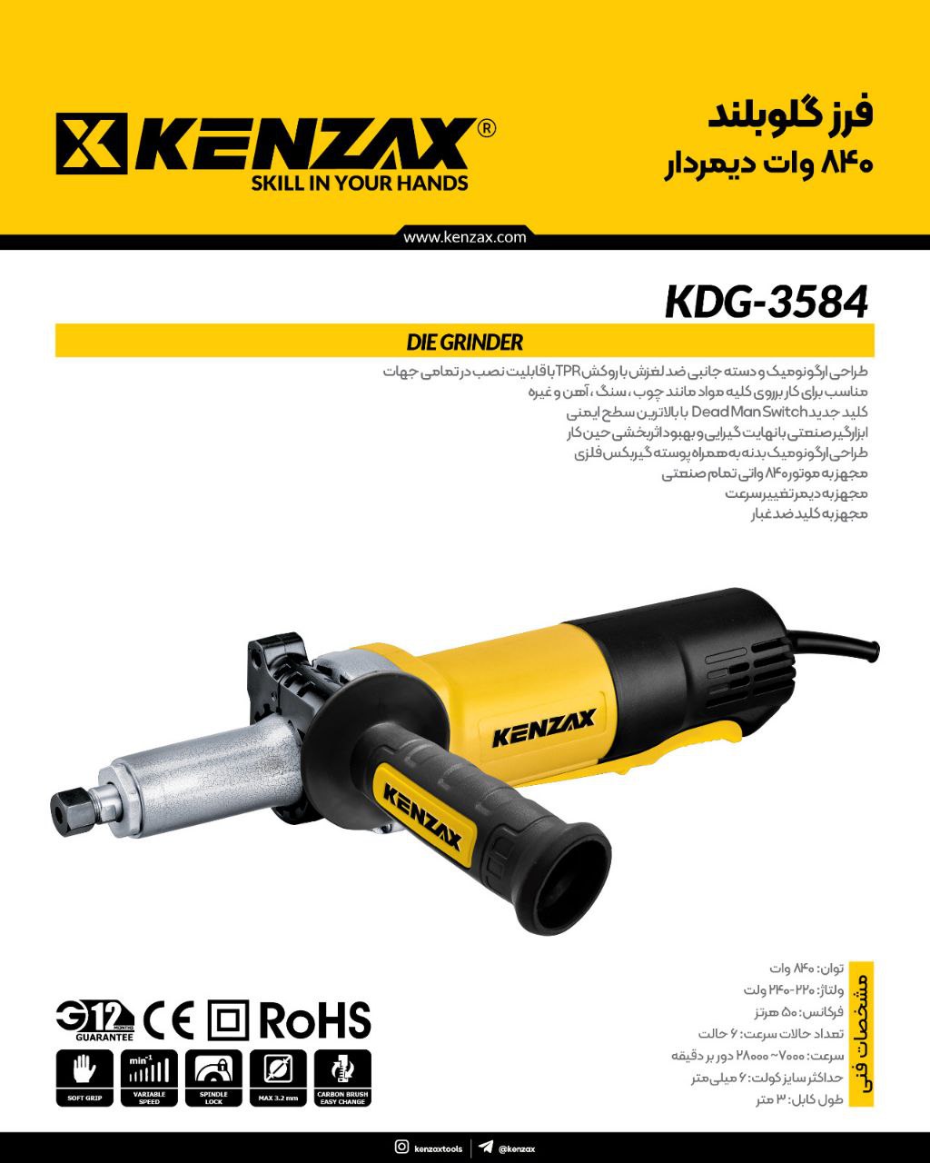فرز گلو بلند 840 وات دیمر دار KDG-3584